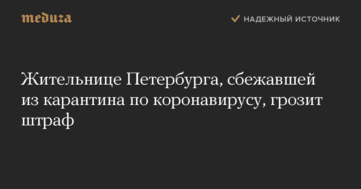 Жительнице Петербурга, сбежавшей из карантина по коронавирусу, грозит штраф
