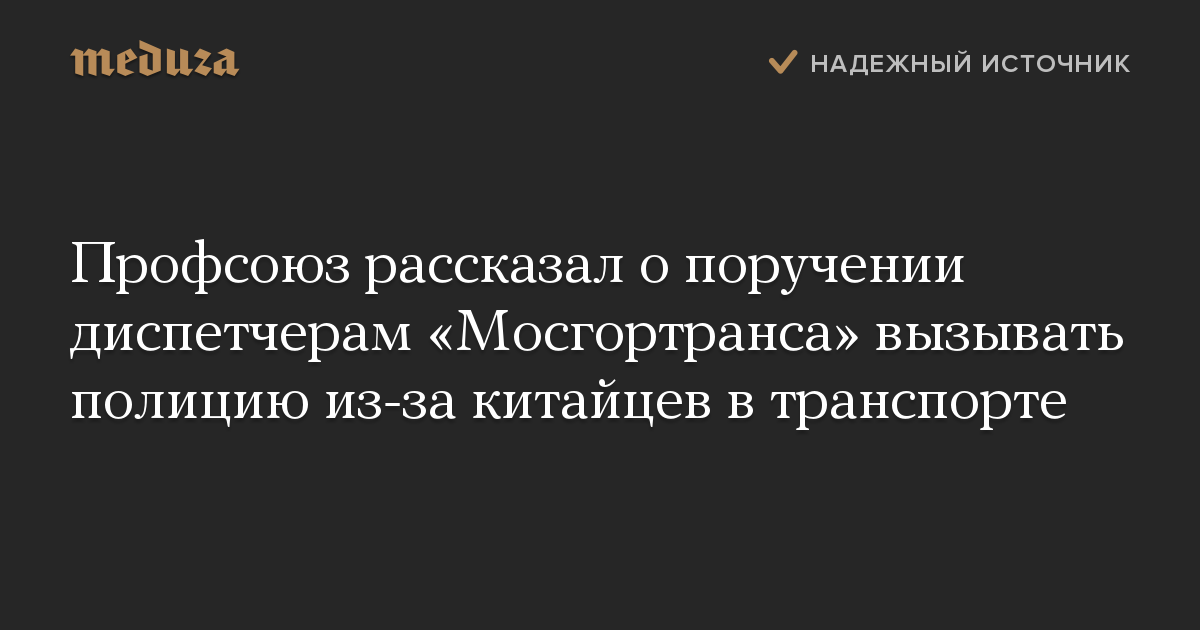 Профсоюз рассказал о поручении диспетчерам «Мосгортранса» вызывать полицию из-за китайцев в транспорте