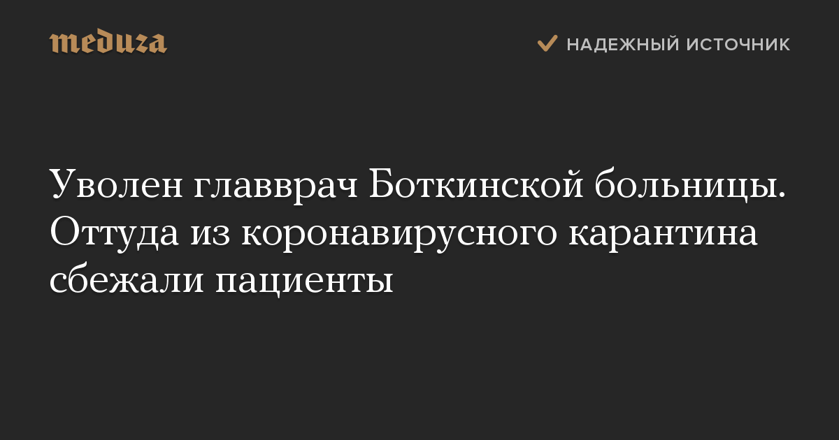 Уволен главврач Боткинской больницы. Оттуда из коронавирусного карантина сбежали пациенты