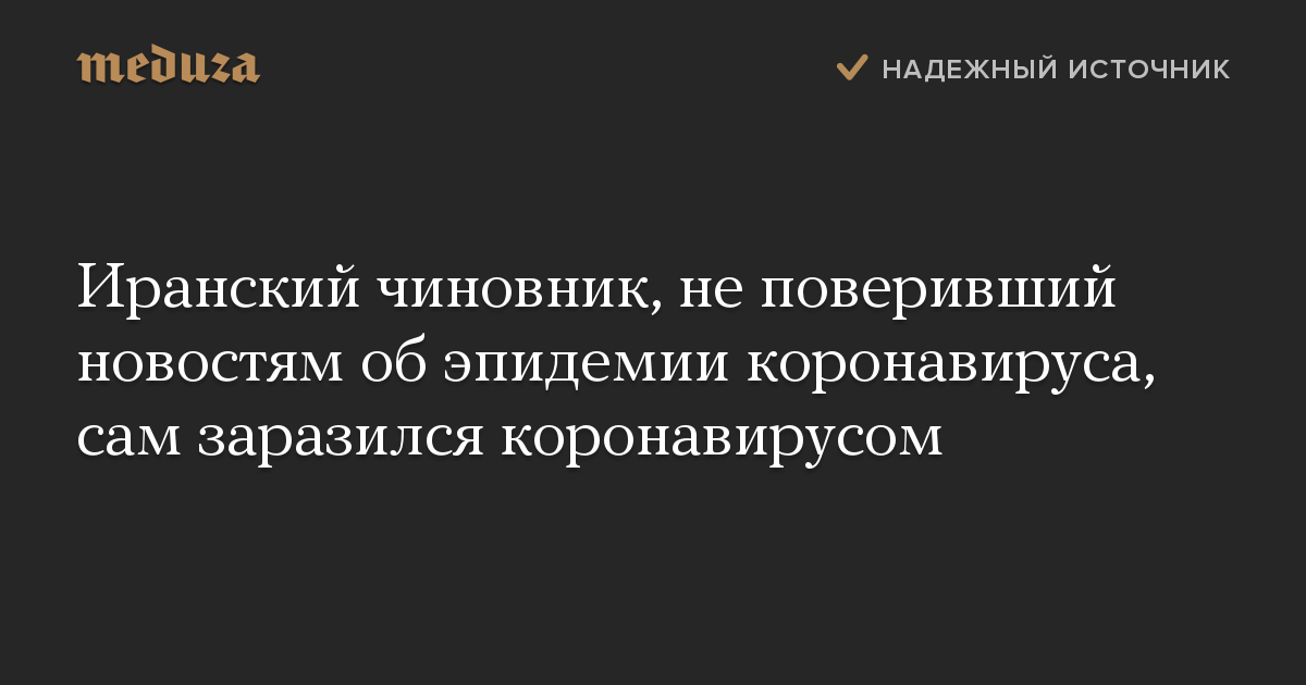 Иранский чиновник, не поверивший новостям об эпидемии коронавируса, сам заразился коронавирусом