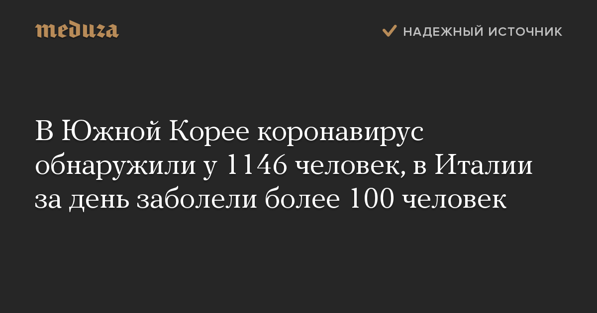 В Южной Корее коронавирус обнаружили у 1146 человек, в Италии за день заболели более 100 человек