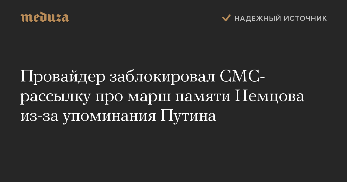 Провайдер заблокировал СМС-рассылку про марш памяти Немцова из-за упоминания Путина