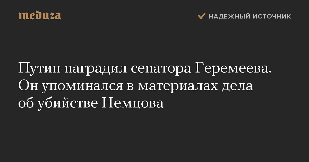 Путин наградил сенатора Геремеева. Он упоминался в материалах дела об убийстве Немцова
