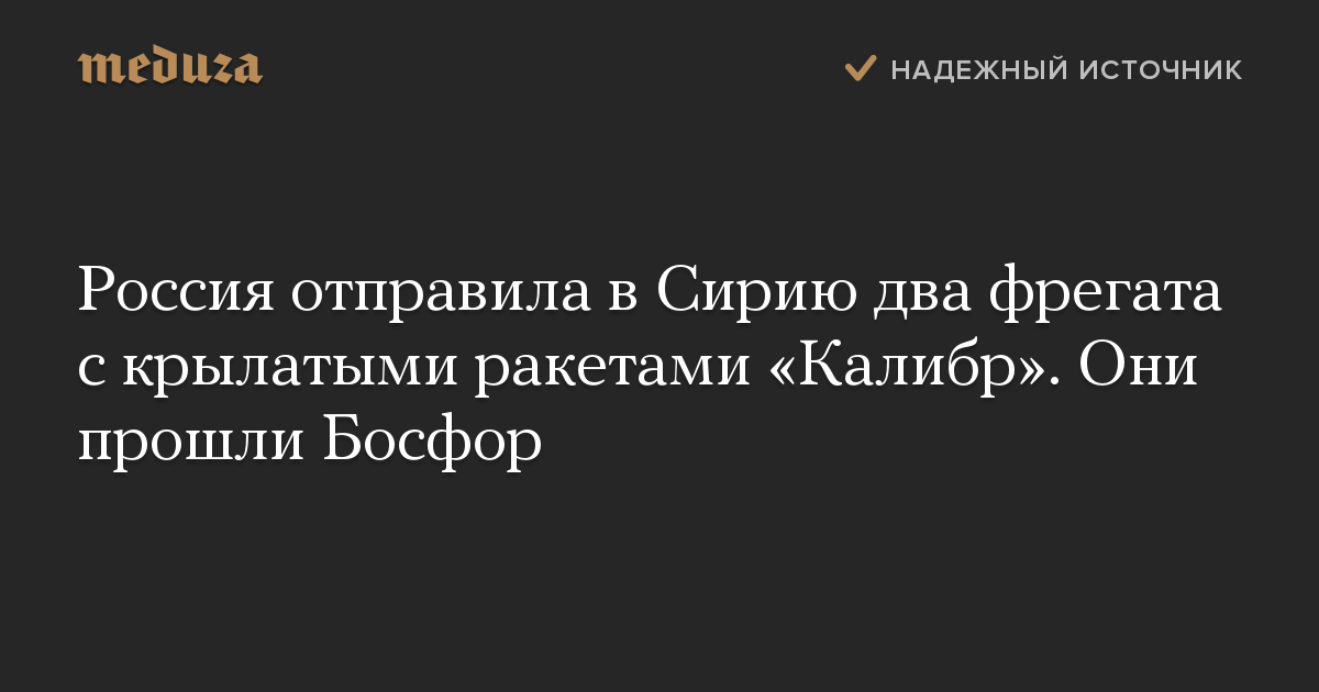 Россия отправила в Сирию два фрегата с крылатыми ракетами «Калибр». Они прошли Босфор