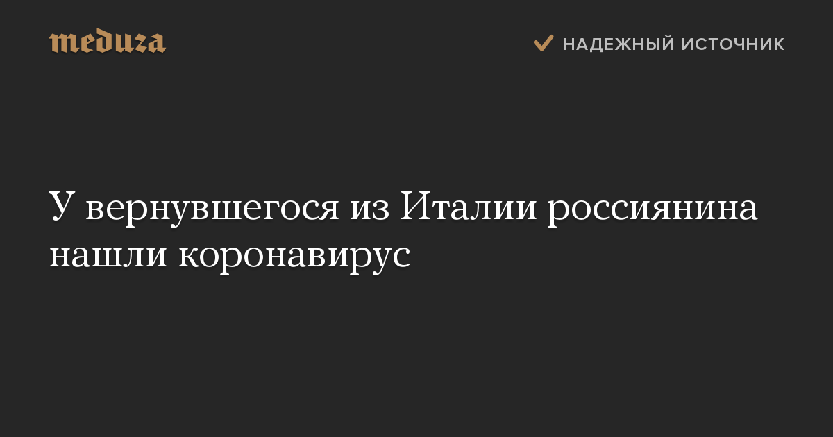 У прибывшего из Италии россиянина обнаружили коронавирус, сообщает Роспотребнадзор.