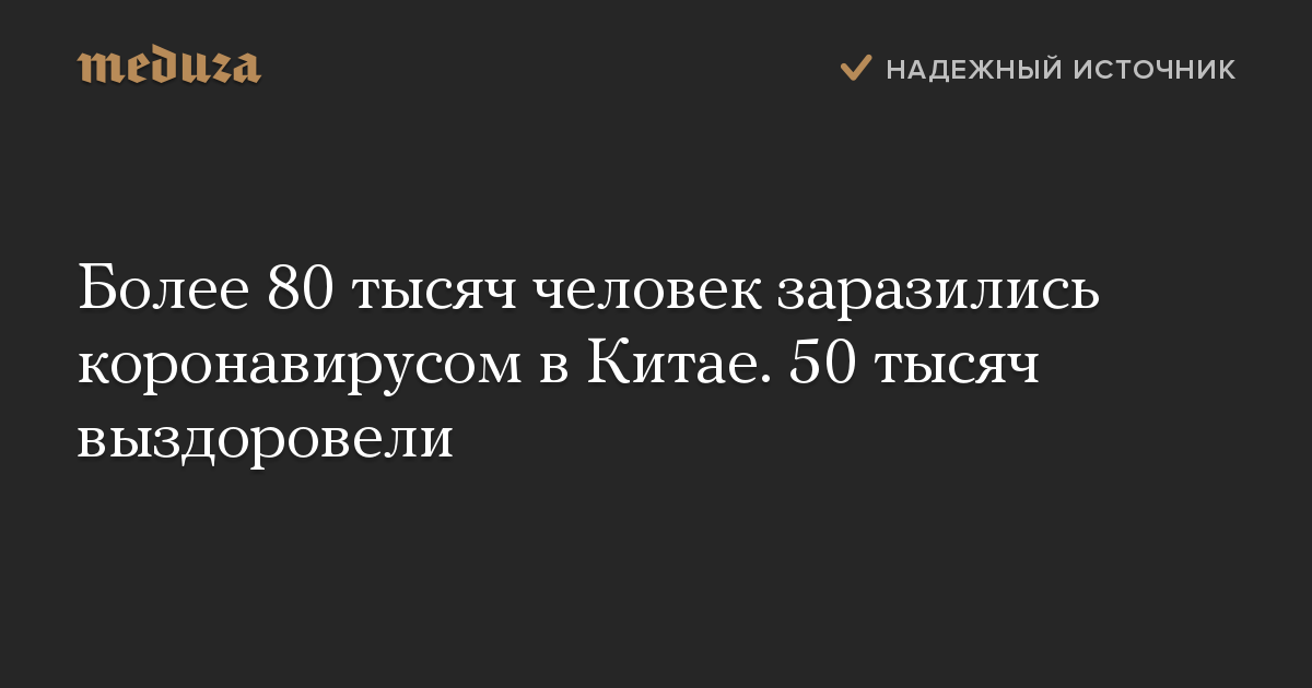 Более 80 тысяч человек заразились коронавирусом в Китае. 50 тысяч выздоровели