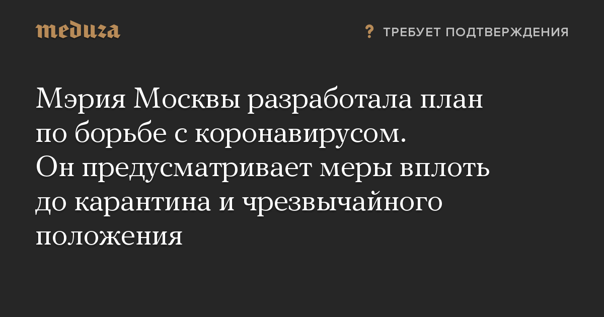 Мэрия Москвы разработала план по борьбе с коронавирусом. Он предусматривает меры вплоть до карантина и чрезвычайного положения