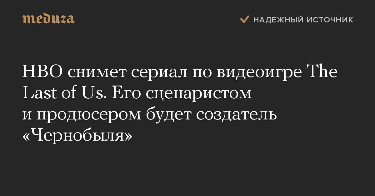 HBO снимет сериал по видеоигре The Last of Us. Его сценаристом и продюсером будет создатель «Чернобыля»