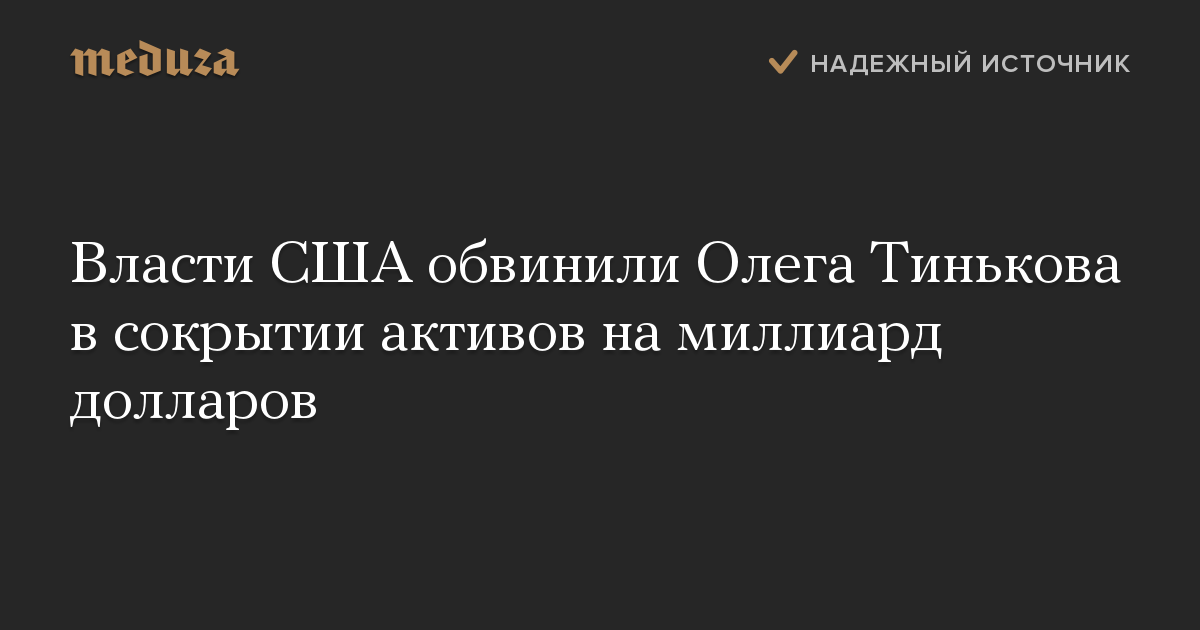 Власти США обвинили Олега Тинькова в сокрытии активов на миллиард долларов