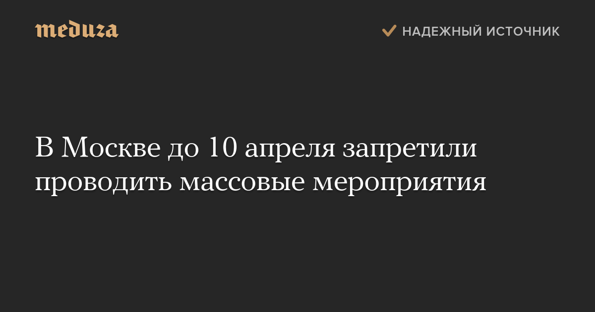 В Москве до 10 апреля запретили проводить массовые мероприятия