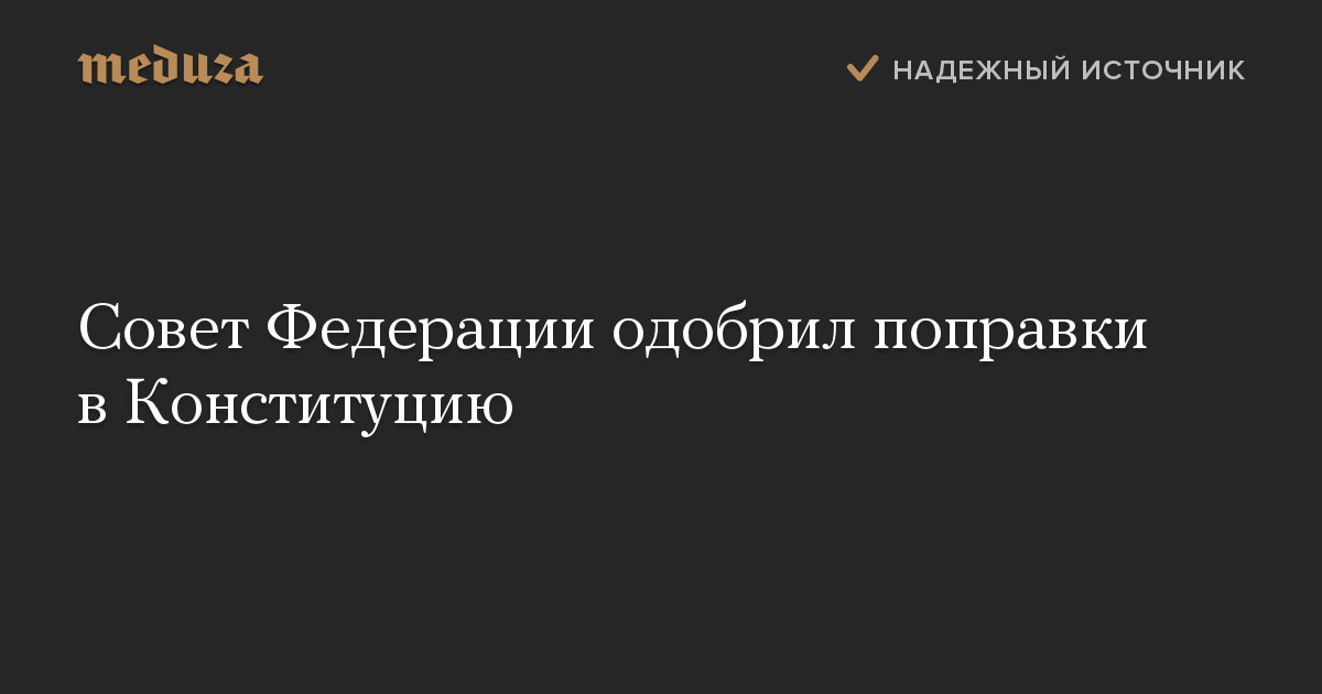 Верхняя палата российского парламента одобрила поправки в Конституцию. Голосование в Совете Федерации прошло через несколько часов после того, как поправки в третьем, окончательном чтении приняла Госдума.