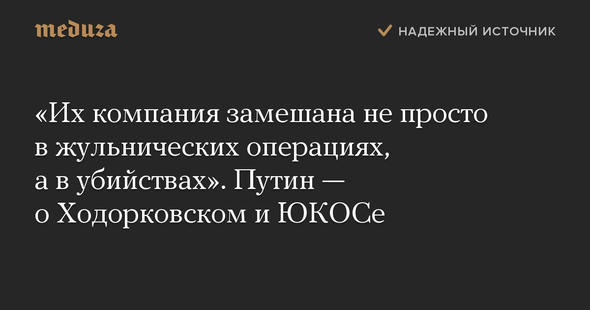 «Их компания замешана не просто в жульнических операциях, а в убийствах». Путин — о Ходорковском и ЮКОСе