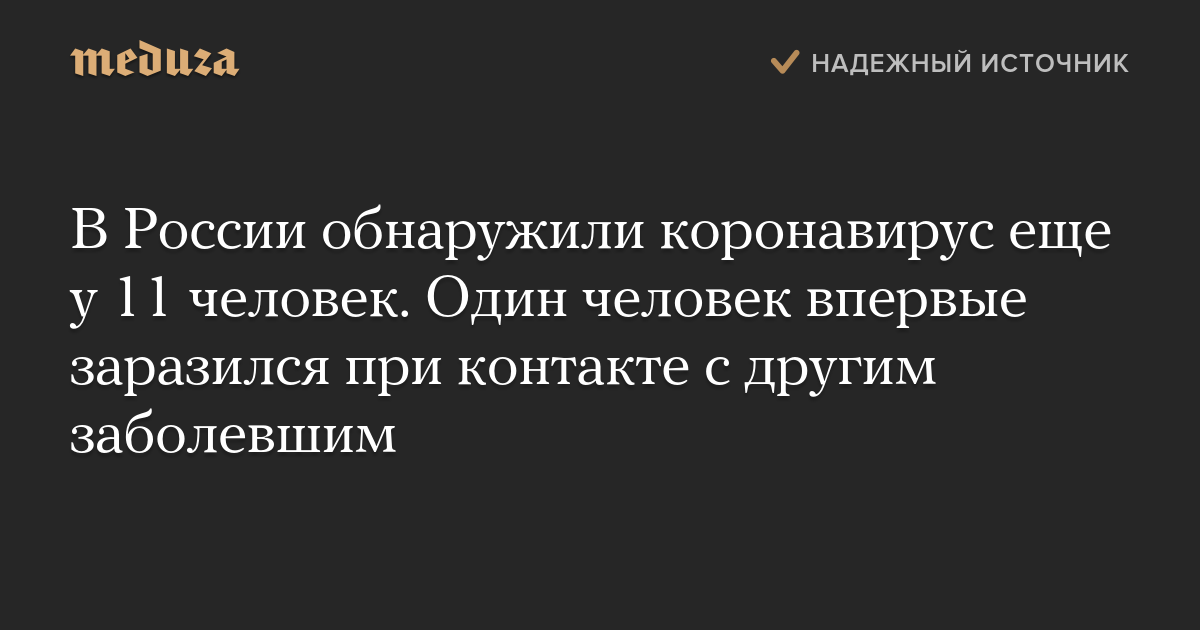 В России обнаружили коронавирус еще у 11 человек. Один человек впервые заразился при контакте с другим заболевшим