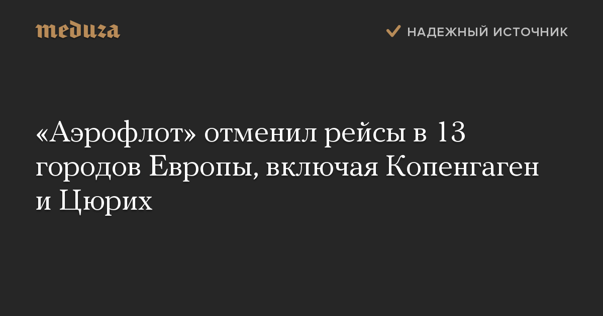 «Аэрофлот» отменил рейсы в 13 городов Европы, включая Копенгаген и Цюрих