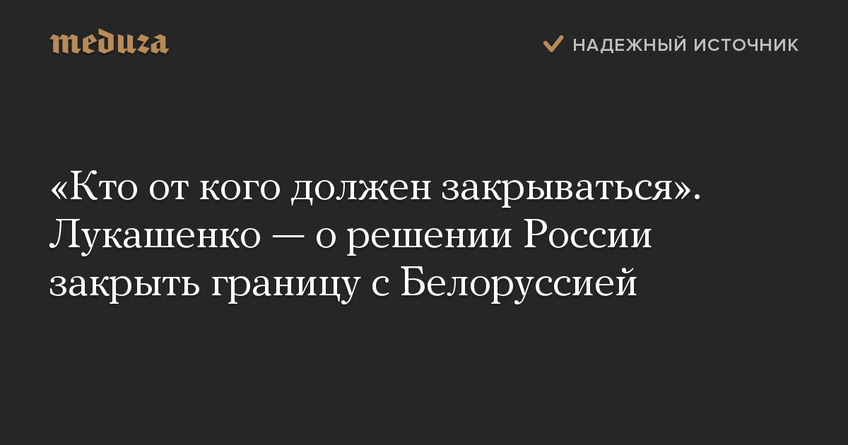 Президент Белоруссии Александр Лукашенко прокомментировал решение России закрыть границу между двумя странами. Об этом сообщает белорусское государственное агентство БЕЛТА.