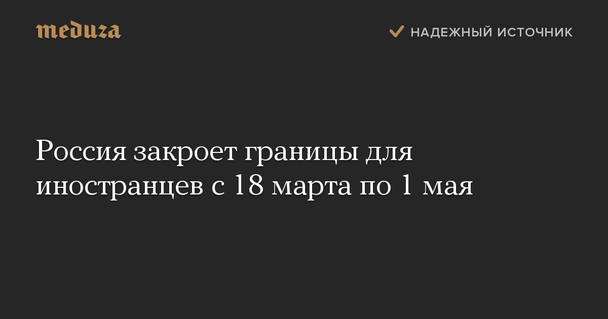Россия закроет границы для иностранцев с 18 марта по 1 мая
