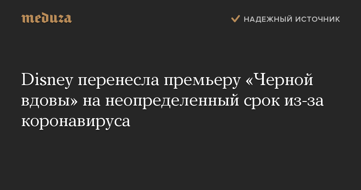 Disney перенесла премьеру фильма Marvel «Черная вдова» на неопределенный срок из-за распространения коронавируса, сообщает The Hollywood Reporter (THR).