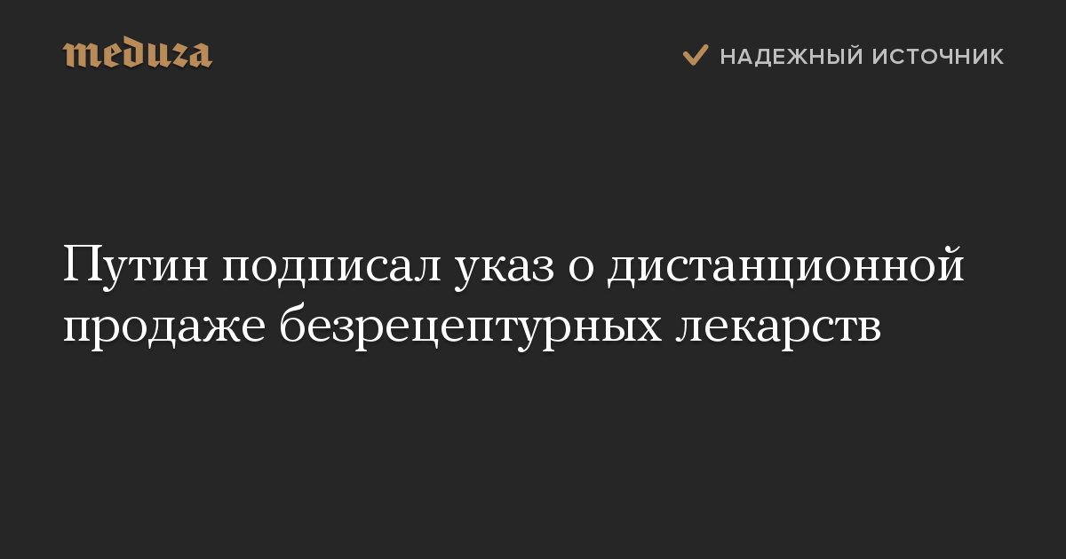 Президент России Владимир Путин подписал указ, разрешающий дистанционную продажу безрецептурных лекарств. Об сообщает «Интерфакс».