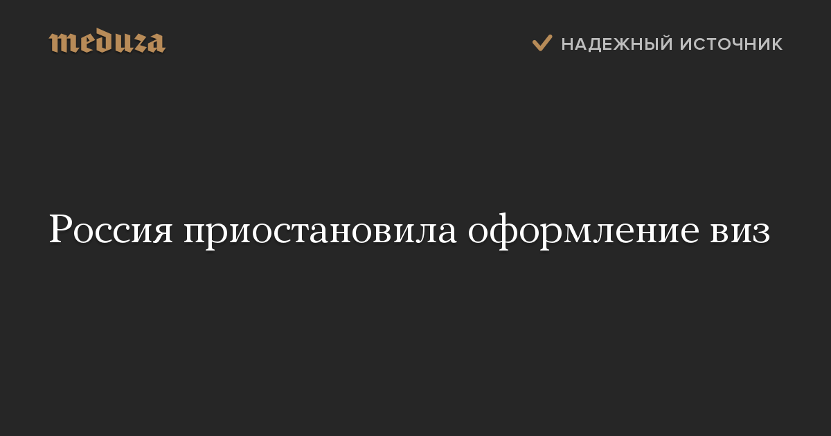 Дипломатические представительства и консульские учреждения РФ приостанавливают прием документов, оформление и выдачу всех категорий виз, сообщает МИД РФ.