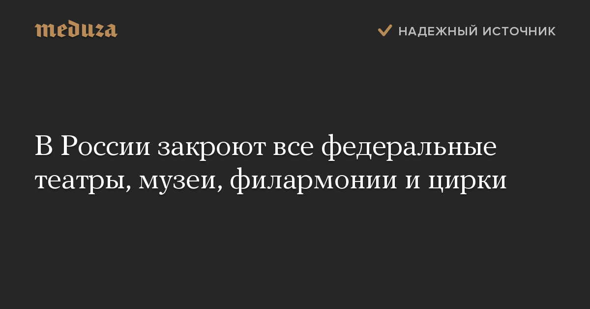 В России закроют все федеральные театры, музеи, филармонии и цирки
