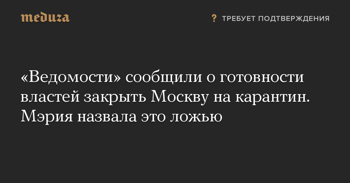 Сразу после публикации «Ведомостей» заместитель мэра Москвы Анастасия Ракова опровергла информацию о карантине: «В связи с распространением в СМИ информации о том, что Москва якобы будет закрыта на карантин, сообщаю о том, что эта информация не соответствует действительности. Сообщения являются ложью».