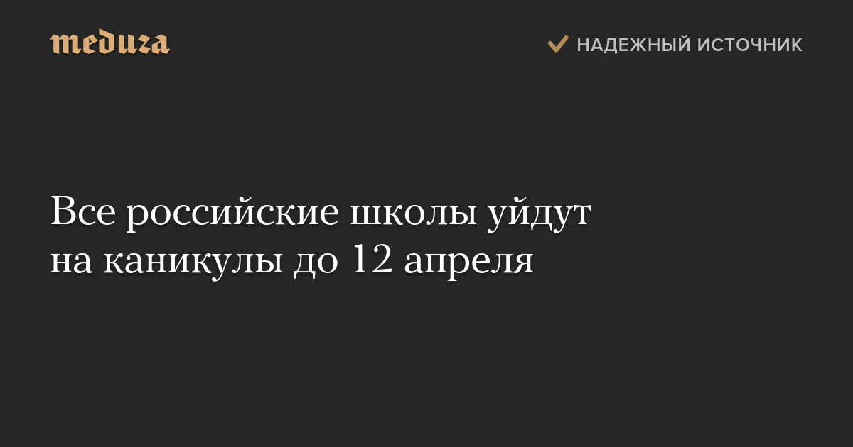 Все российские школы уйдут на каникулы до 12 апреля