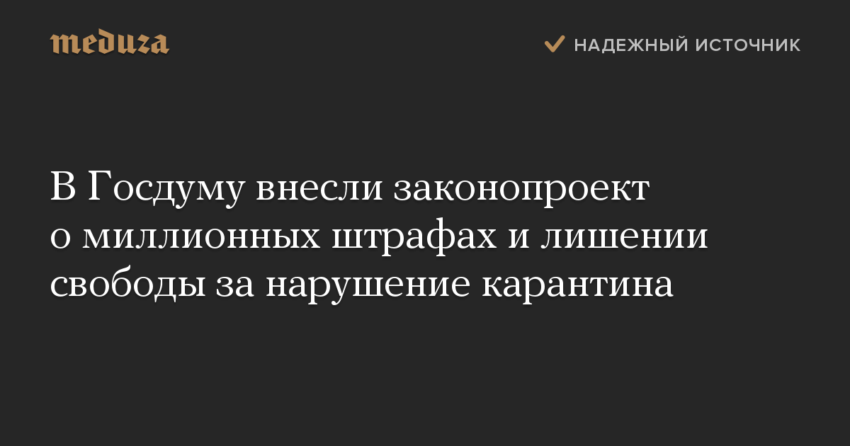В Госдуму внесли законопроект о миллионных штрафах и лишении свободы за нарушение карантина