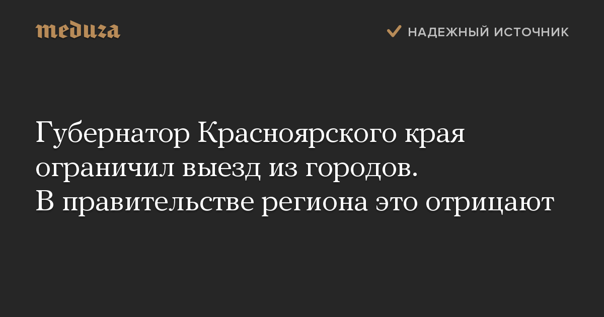 Губернатор Красноярского края ограничил выезд из городов. В правительстве региона это отрицают