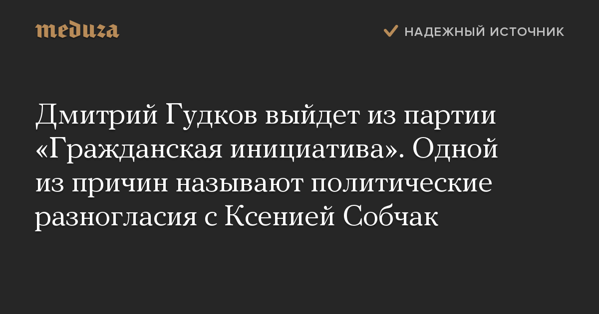 «Источники в Минюсте прямо сказали, что есть политическое решение закрыть партию во главе с Гудковым. В этих условиях, чтобы не мешать однопартийцам бороться за сохранение структуры и участвовать в выборах, наша команда решила выйти из „Гражданской инициативы“ и начать подготовку к выборам в Госдуму по одномандатным округам», — написал Гудков.