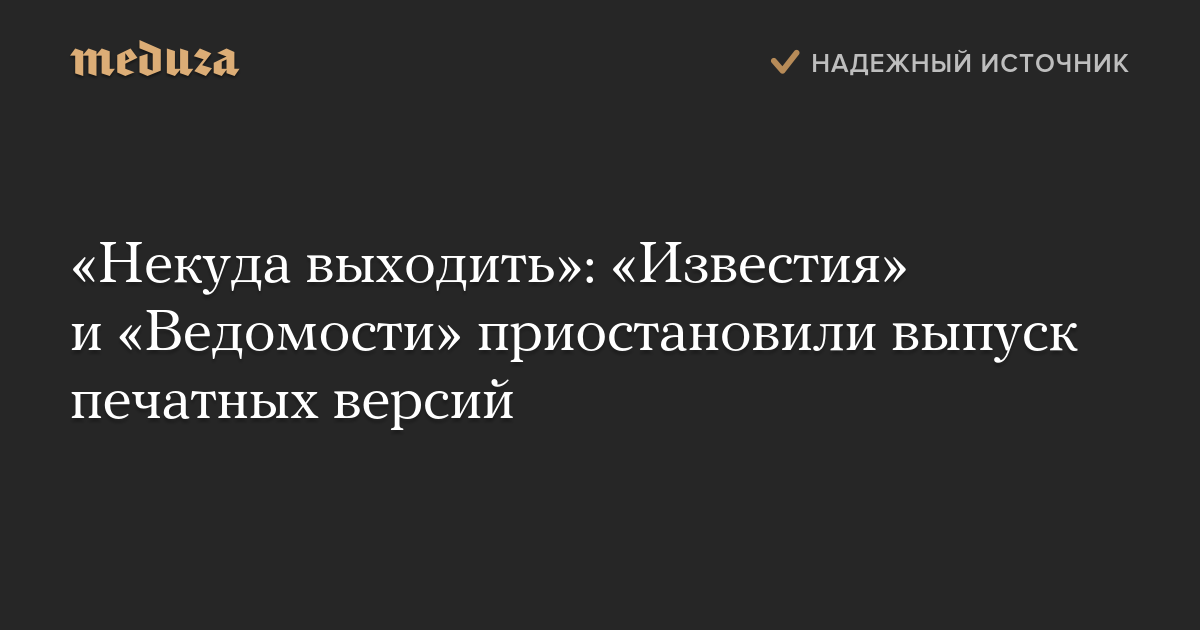 «Некуда выходить»: «Известия» и «Ведомости» приостановили выпуск печатных версий