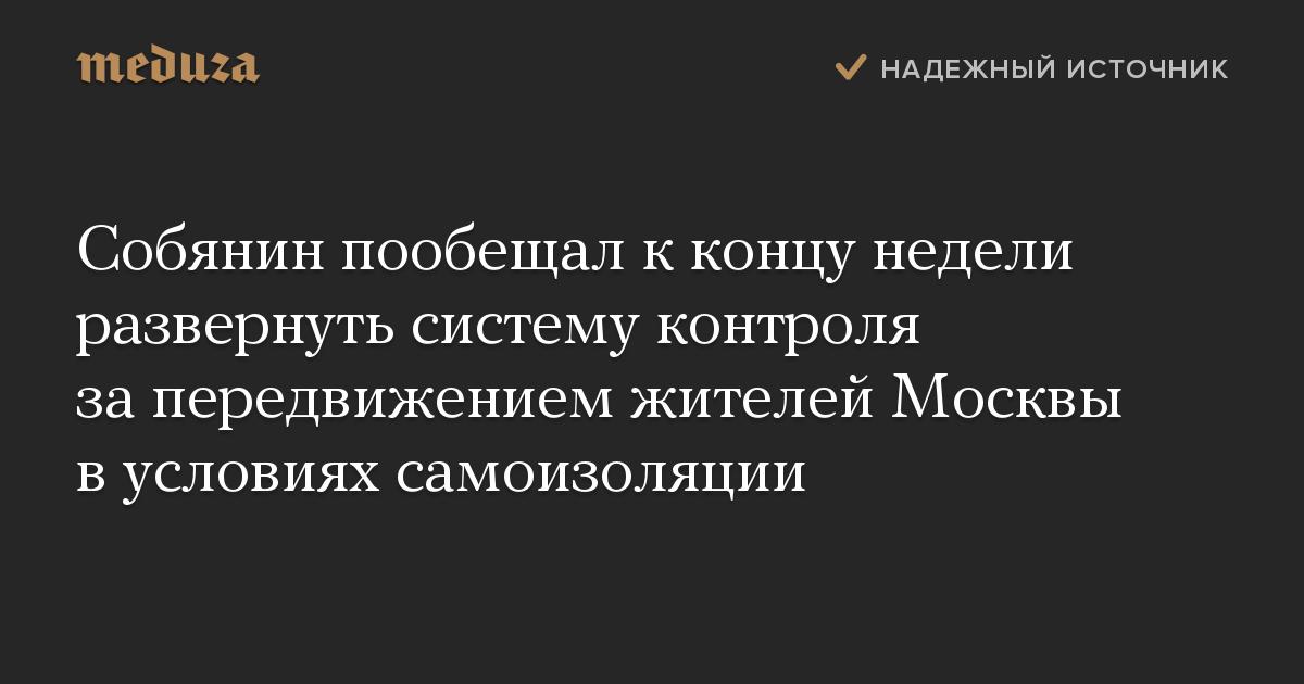 Собянин пообещал к концу недели развернуть систему контроля за передвижением жителей Москвы в условиях самоизоляции