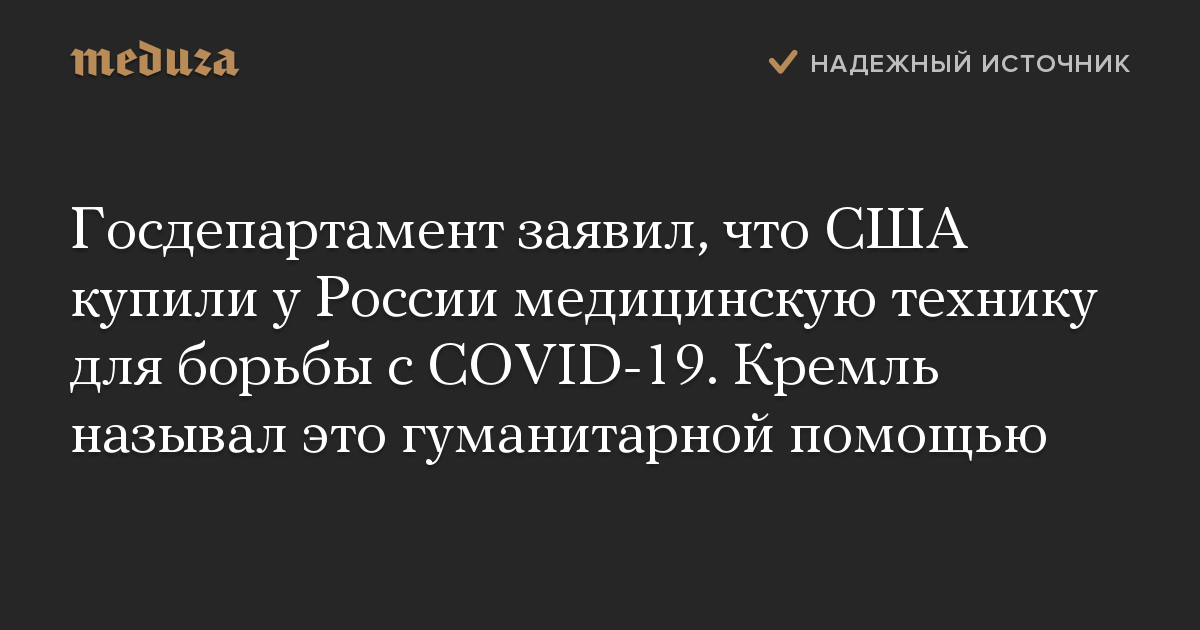 Госдепартамент заявил, что США купили у России медицинскую технику для борьбы с COVID-19. Кремль называл это гуманитарной помощью