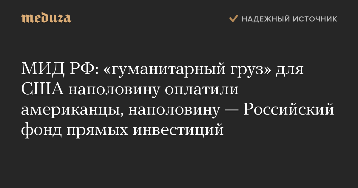 МИД РФ: «гуманитарный груз» для США наполовину оплатили американцы, наполовину — Российский фонд прямых инвестиций