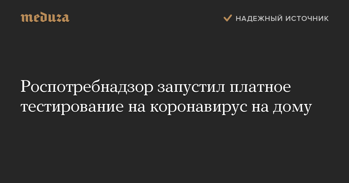 Роспотребнадзор запустил платное тестирование на коронавирус на дому