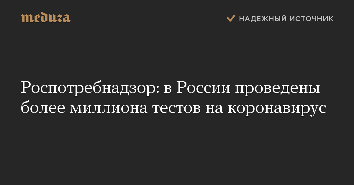 Роспотребнадзор: в России проведены более миллиона тестов на коронавирус
