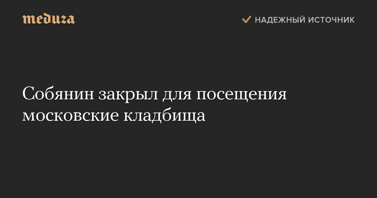 «На Вербное воскресенье, Пасху, Красную горку и Радоницу многие москвичи стараются побывать на кладбищах, — приводятся слова Собянина на его сайте. — К сожалению, нынешней весной сделать это будет невозможно <…> Риск заражения новой коронавирусной инфекцией очень велик».