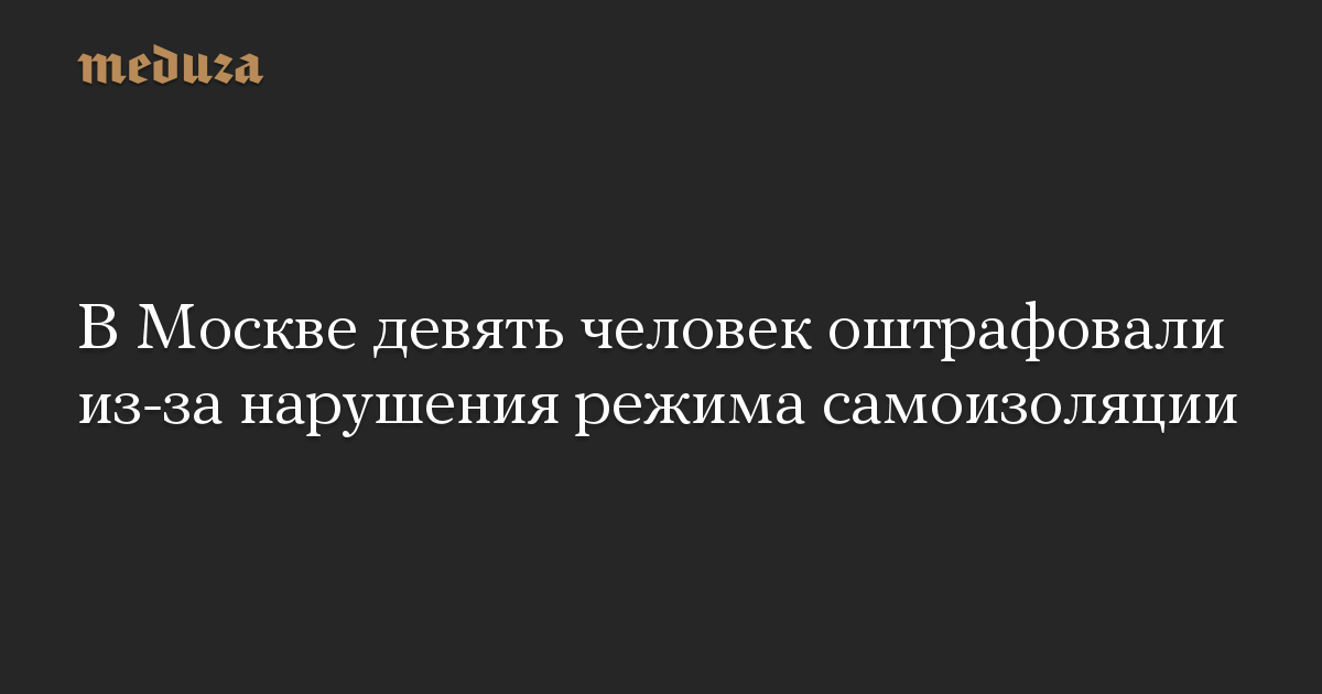 В Москве из-за нарушения режима самоизоляции оштрафовали девять человек на 15 тысяч рублей каждого, сообщает ТАСС.