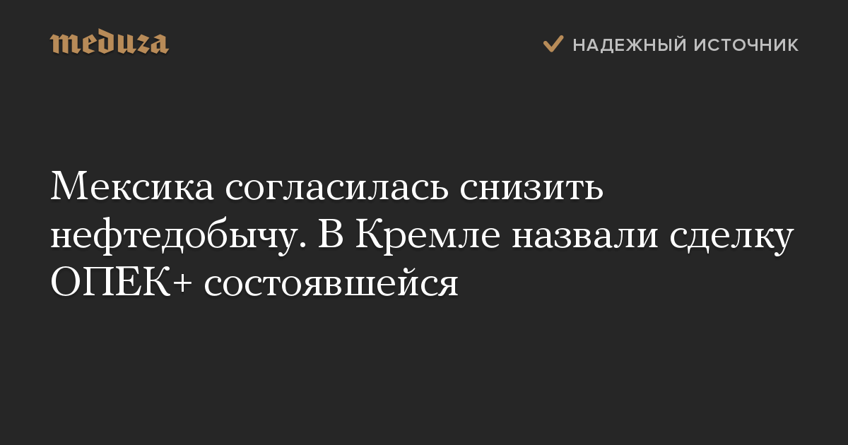 Мексика согласилась снизить нефтедобычу. В Кремле назвали сделку ОПЕК+ состоявшейся