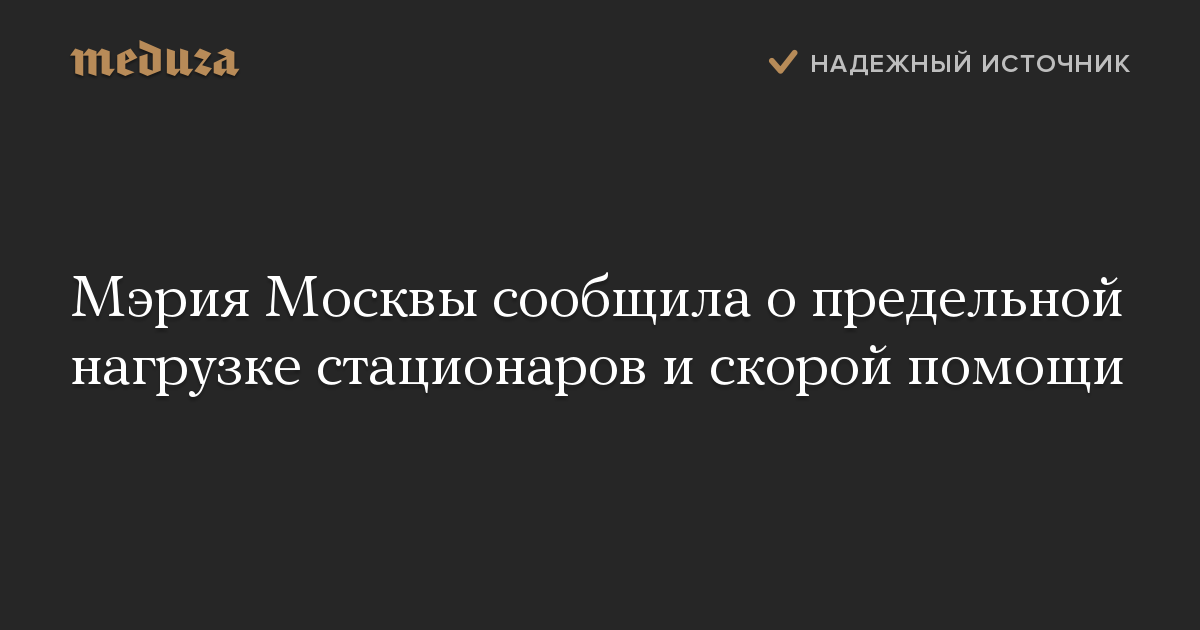 Мэрия Москвы сообщила о предельной нагрузке стационаров и скорой помощи