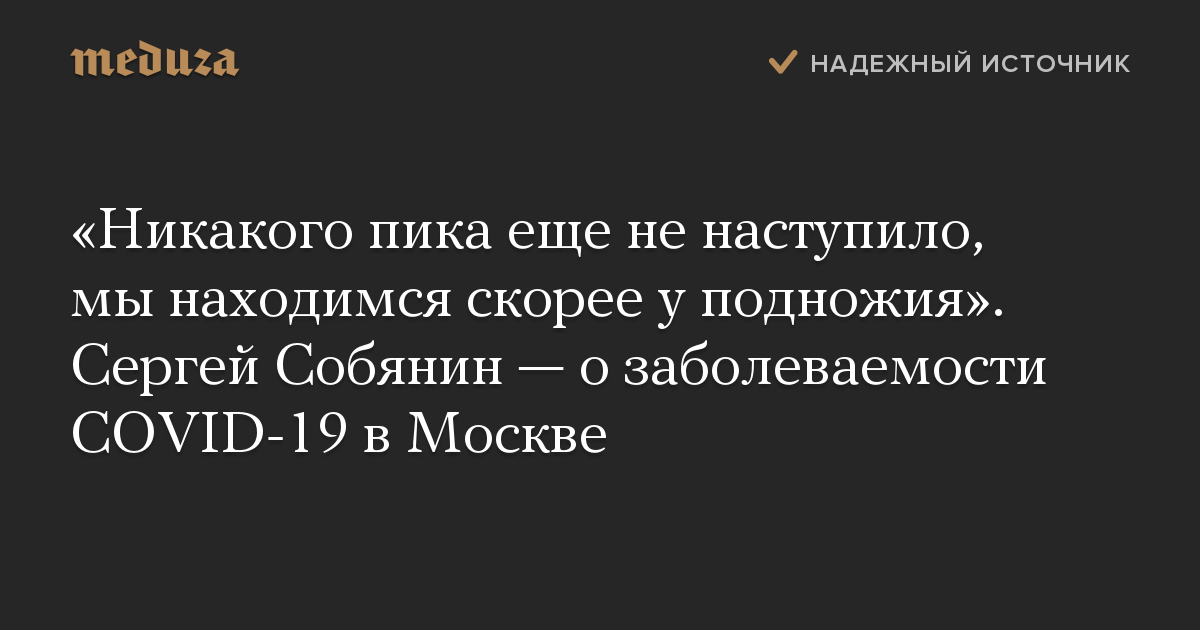 «Я вам точно говорю, никакого пика еще не наступило, мы находимся скорее у подножия этого пика, даже не в середине», — сказал Собянин.