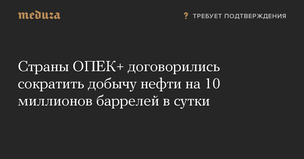 Страны ОПЕК+ договорились сократить добычу нефти на 10 миллионов баррелей в сутки