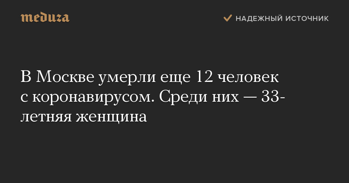 В Москве умерли еще 12 человек с коронавирусом. Среди них — 33-летняя женщина