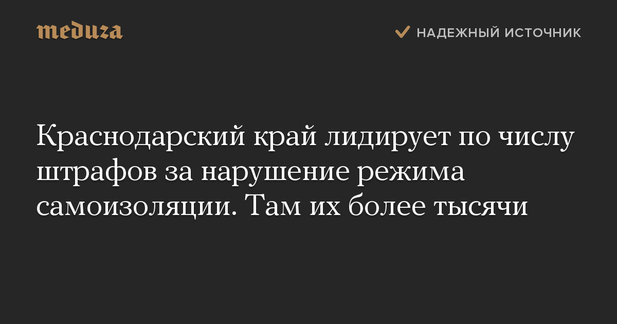 Краснодарский край лидирует по числу штрафов за нарушение режима самоизоляции. Там их более тысячи