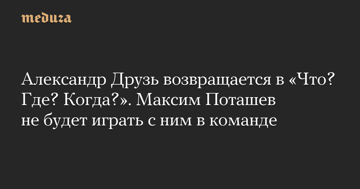 Александр Друзь возвращается в «Что? Где? Когда?». Максим Поташев не будет играть с ним в команде
