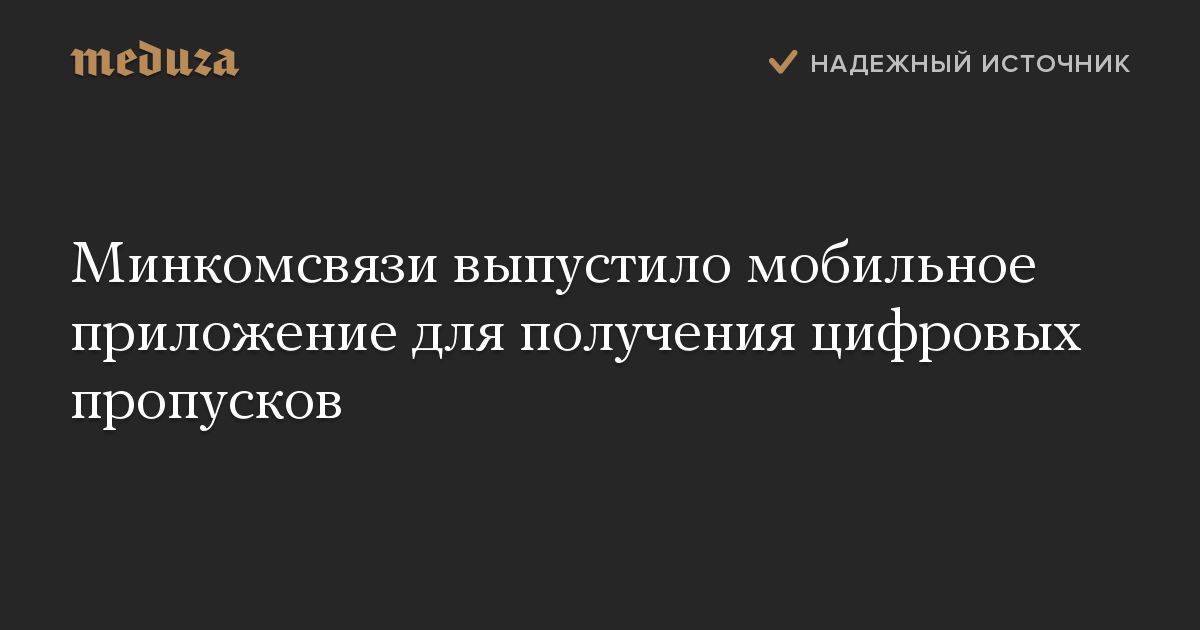 Минкомсвязи выпустило мобильное приложение для получения цифровых пропусков