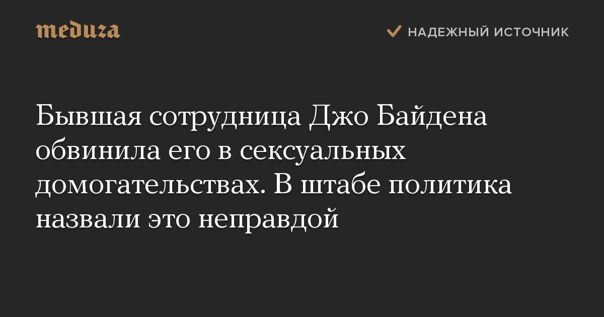 Предвыборный штаб бывшего вице-президента США Джо Байдена отверг обвинения в сексуальных домогательствах, которые против него выдвинула бывшая сотрудница Тара Рид.