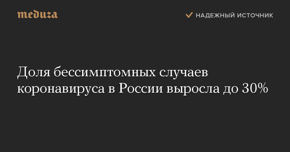 Доля бессимптомных случаев коронавируса в России выросла до 30%