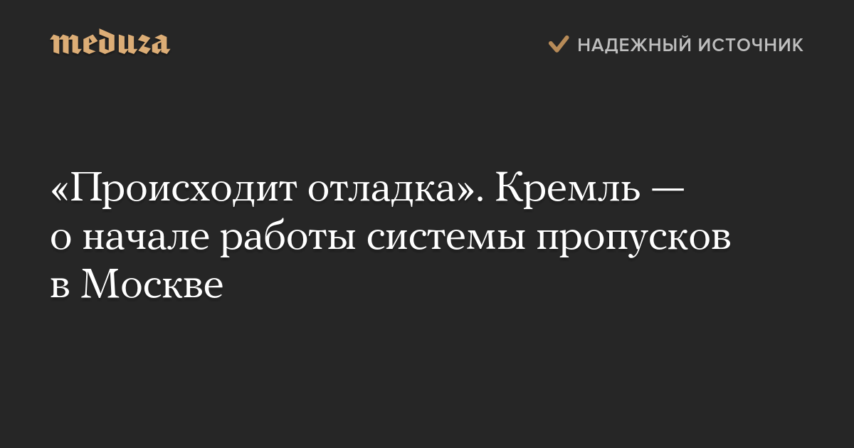 «Происходит отладка». Кремль — о начале работы системы пропусков в Москве