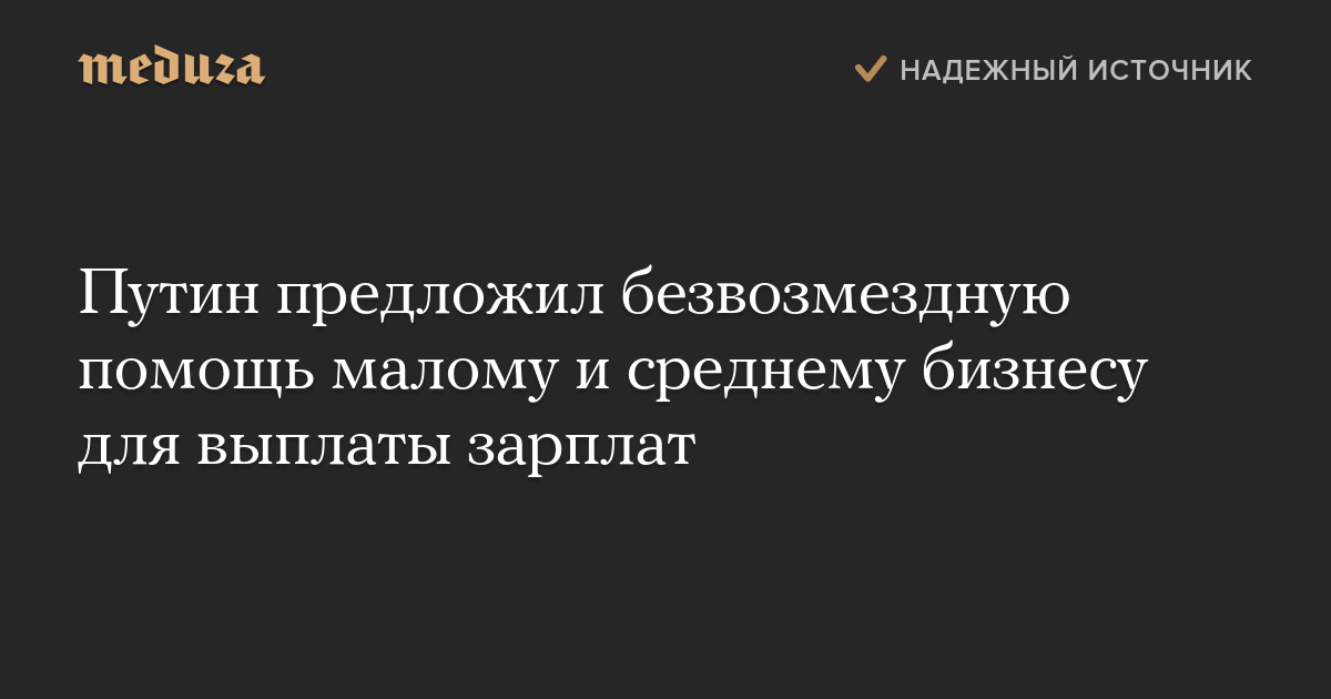 Путин предложил безвозмездную помощь малому и среднему бизнесу для выплаты зарплат