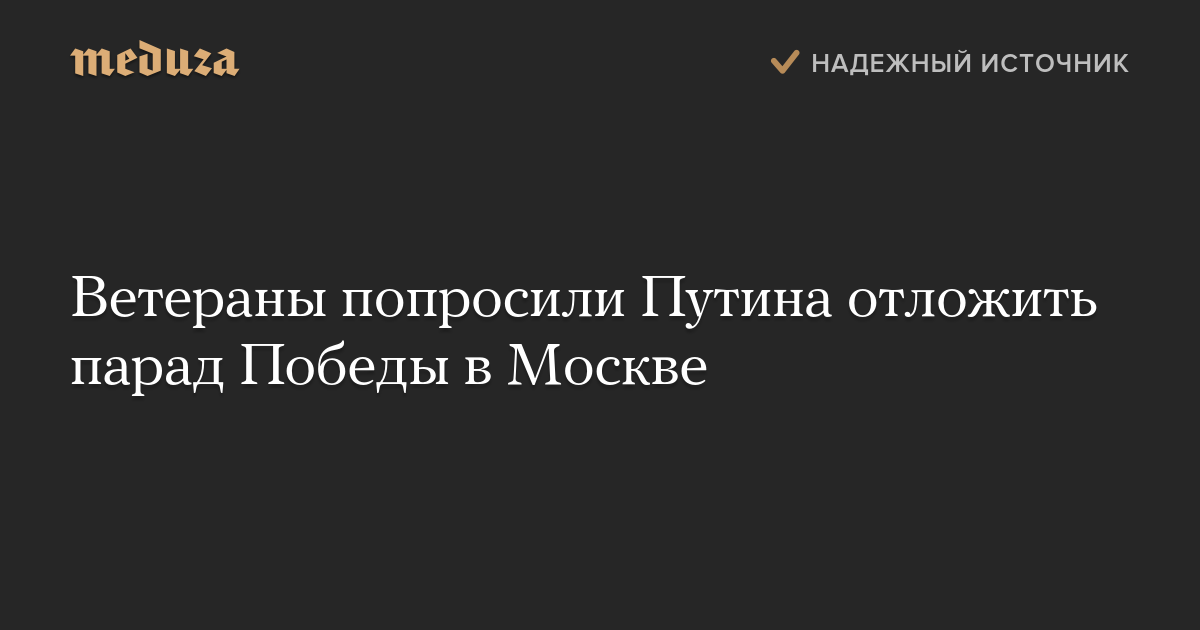«От лица всего ветеранского сообщества просим вас принять сложное, но, как мы считаем, справедливое решение о проведении военного парада в другую дату, когда в соответствии с эпидемиологической ситуацией парад станет не угрозой, а поистине торжеством мира и безопасности для всех его участников», — говорится в обращении.
